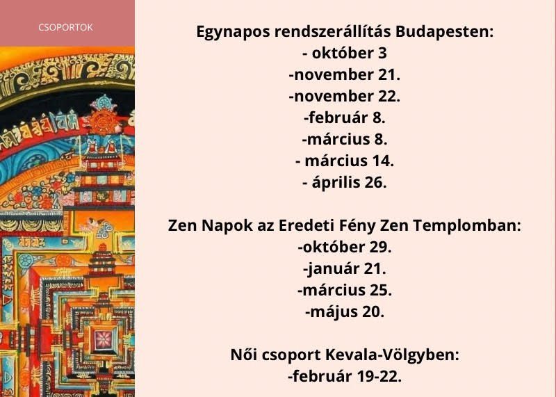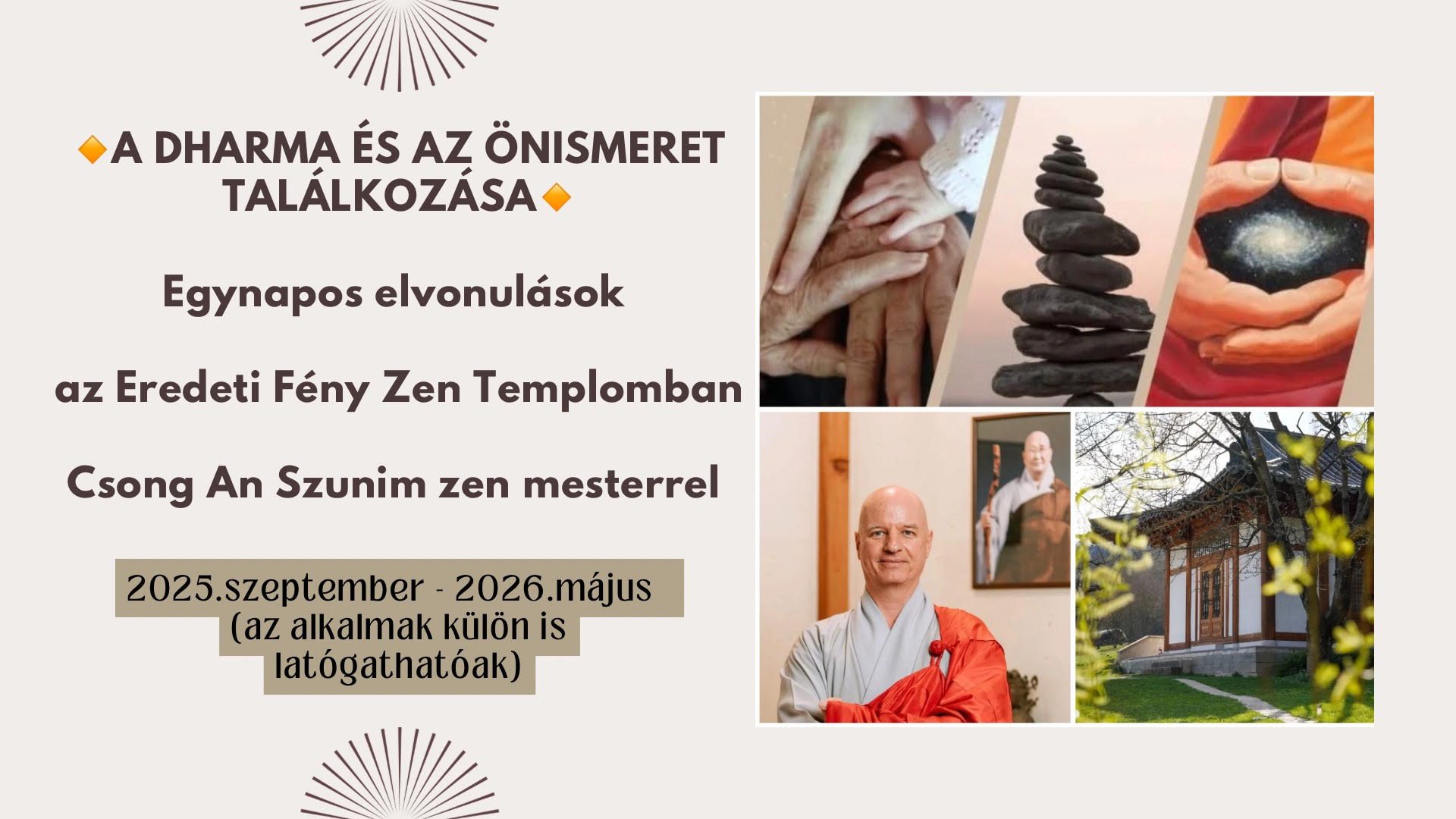 Várunk szeretettel 10 hónapos zárt csoportunkba, melyben a zen tanítást Csong An Szunim zen mester fogja adni, az Eredeti Fény…